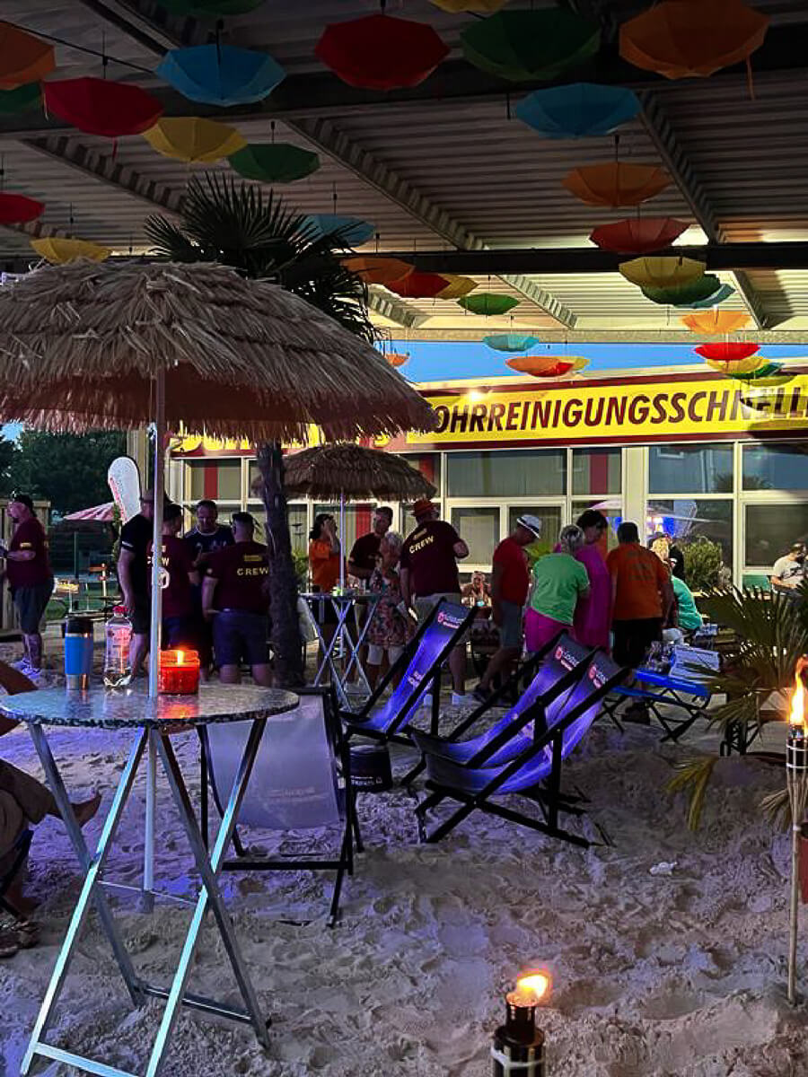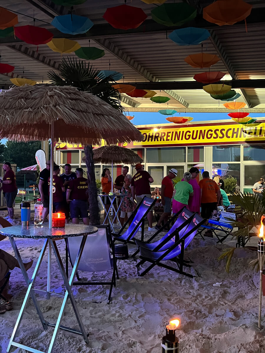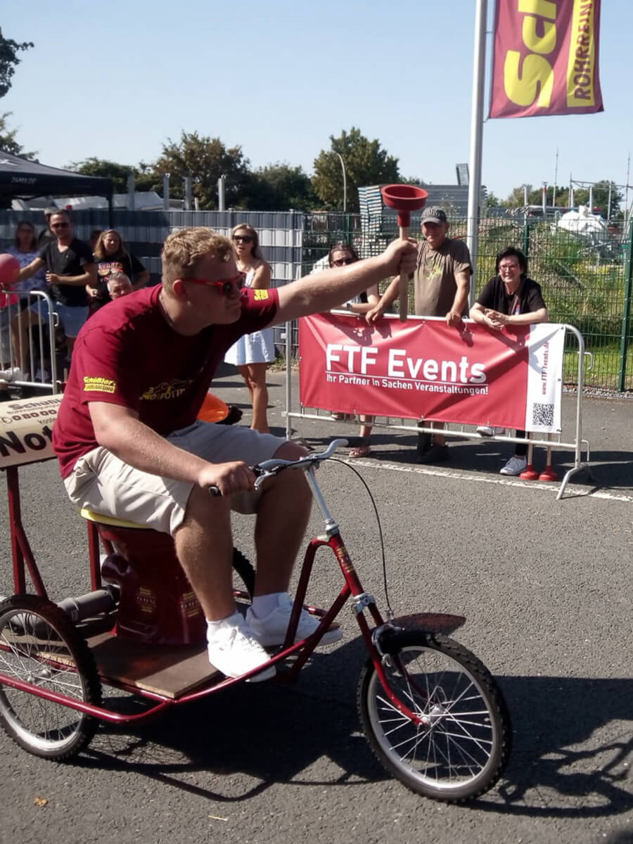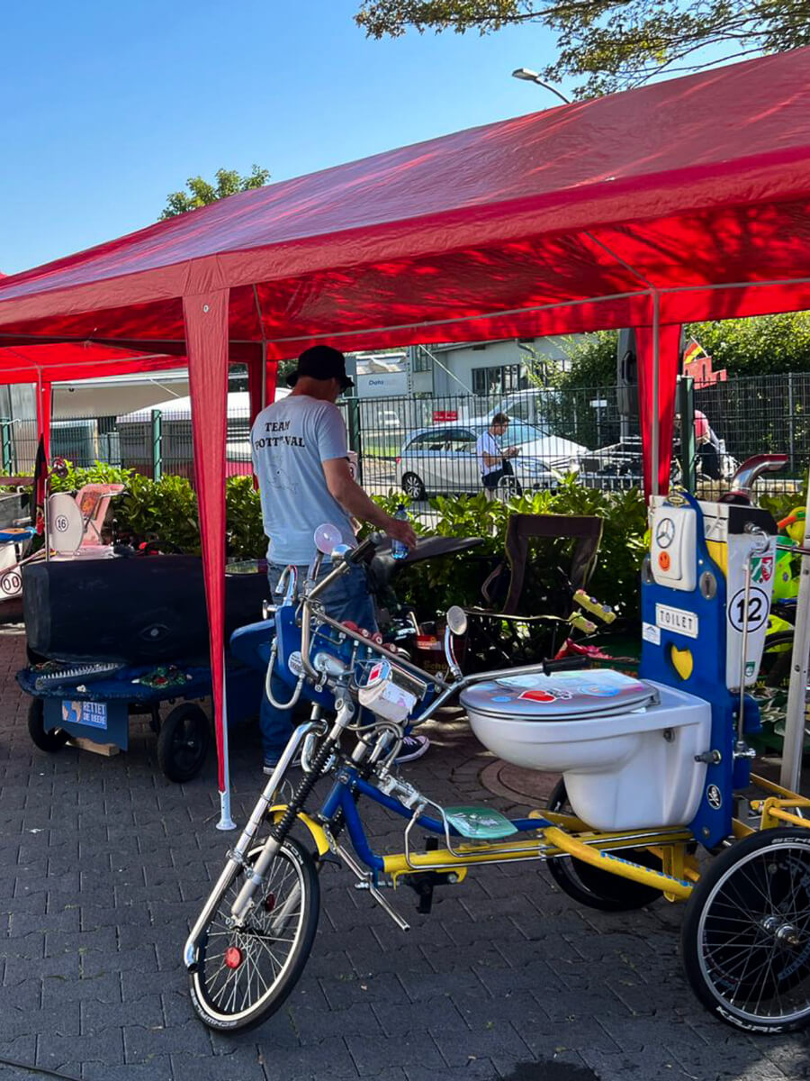 Das angrenzende Firmengelände von Schüßler’s Rohrreinigungsschnelldienst wird zum zentralen Dreh- und Angelpunkt der Veranstaltung. Hier findet ihr nicht nur das bunte Rahmenprogramm und die leckere Verpflegung, sondern auch die Rennställe, in denen die Starterteams ihre „Pötte“ vorbereiten.