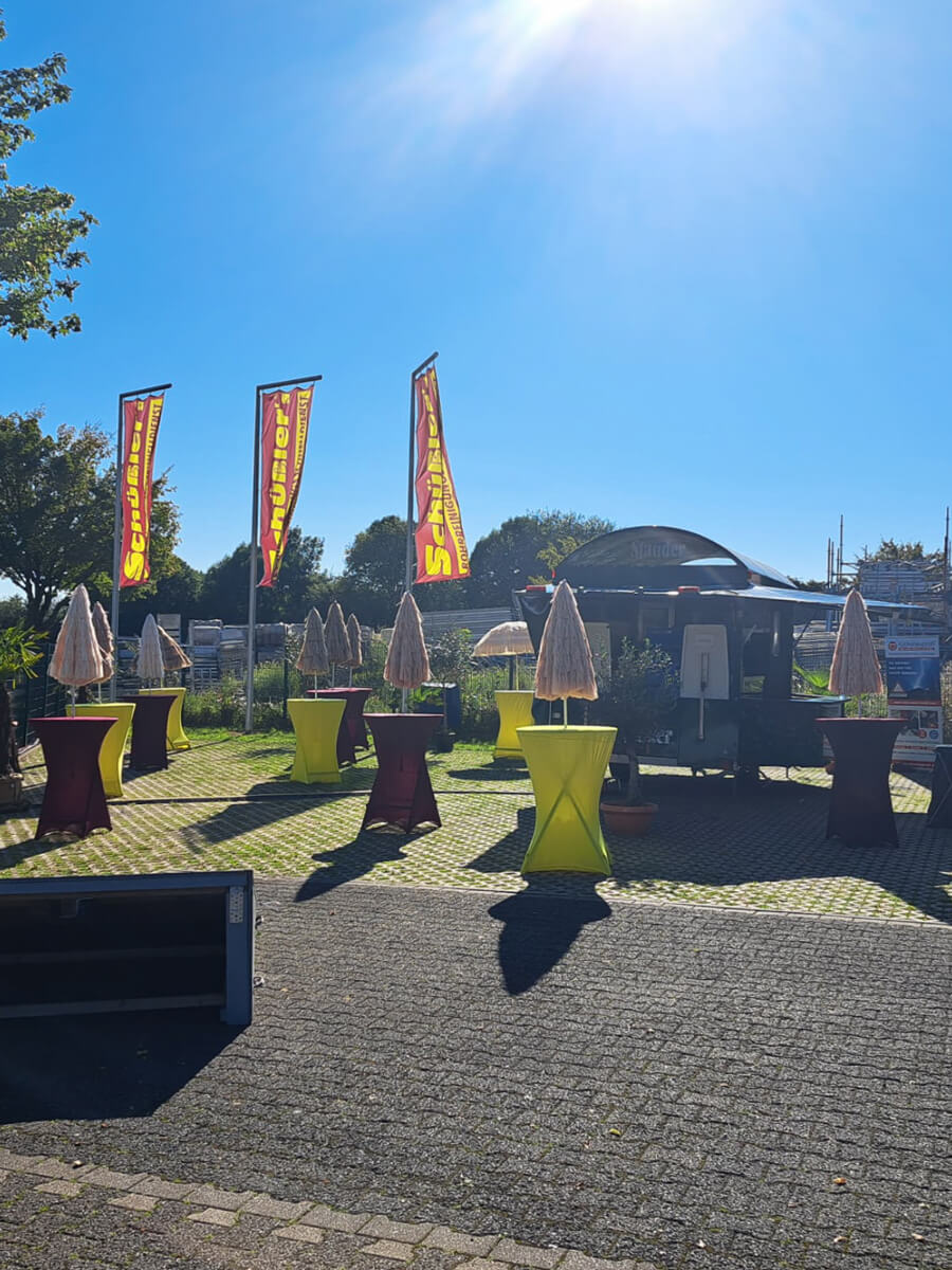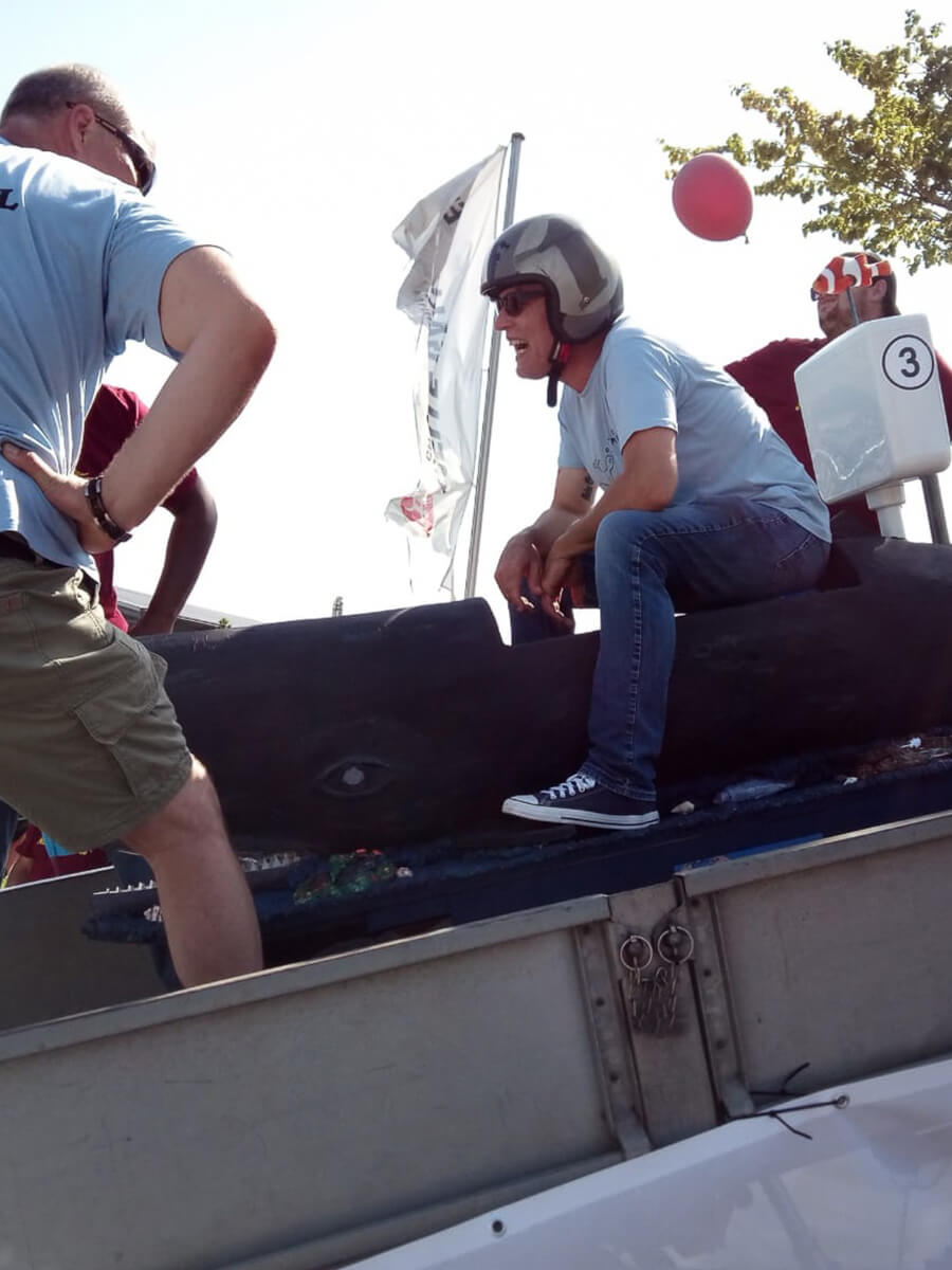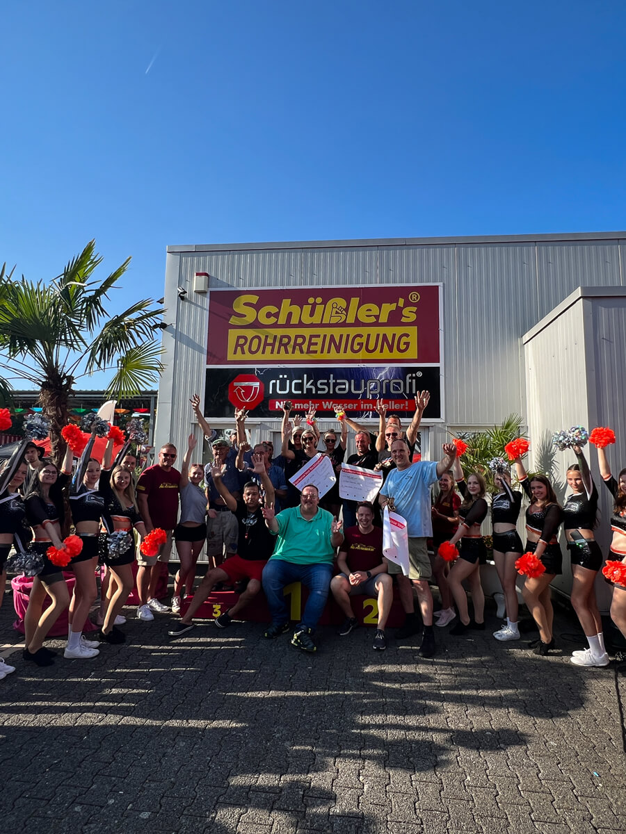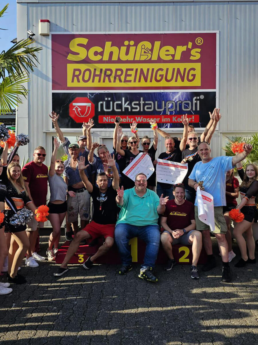 Das angrenzende Firmengelände von Schüßler’s Rohrreinigungsschnelldienst wird zum zentralen Dreh- und Angelpunkt der Veranstaltung. Hier findet ihr nicht nur das bunte Rahmenprogramm und die leckere Verpflegung, sondern auch die Rennställe, in denen die Starterteams ihre „Pötte“ vorbereiten.
